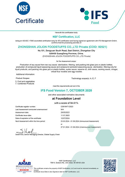 JOLION FOODS COMPANY, a wholesale sauce supplier, was founded in the 2000s in Zhongshan city, offering various kinds of Oriental Soy Sauce and other Chinese Foods in China. The factory owns 270 employees, covers an area of forty thousand square meters, owns 12 production lines with the most advanced fully automated production equipment in the industry, annual outputs of 75000 tons of products, and annual sales of 20 million USD.